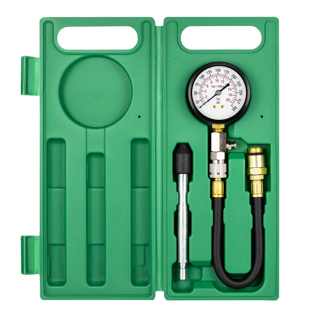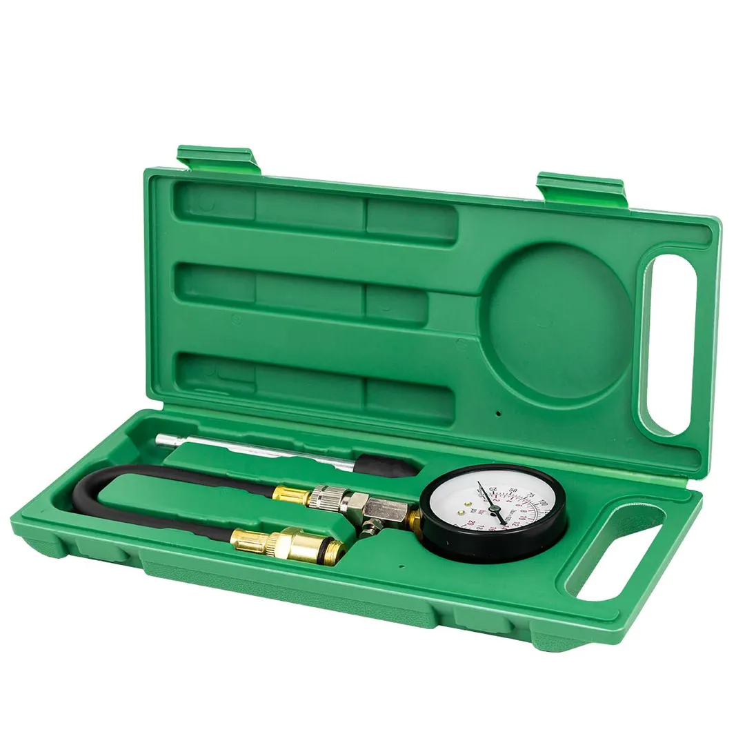 Набор с индикатором компрессии бензинового двигателя из 3 предметов, в кейсе - это прибор, который позволяет измерить давление в цилиндрах двигателя автомобиля. Он состоит из манометра, жесткого прижимного адаптера-переходника 150мм и набора адаптеров для различных типов двигателей. Манометр имеет диапазон измерений от 0 до 20 бар и точность измерения ±0,25 бар. Жесткий прижимной адаптер обеспечивает надежное крепление индикатора на двигателе и предотвращает его смещение во время измерения. Набор адаптеров позволяет использовать индикатор для различных типов бензиновых двигателей, включая двигатели с резьбой M14х1.25 и M18х1.5. Каждый адаптер имеет свою резьбу и подходит только для определенного типа двигателя. Компрессометр бензинового двигателя поставляется в кейсе для удобства хранения и транспортировки.Преимущества работы с нами