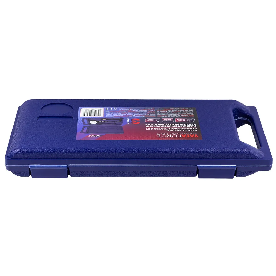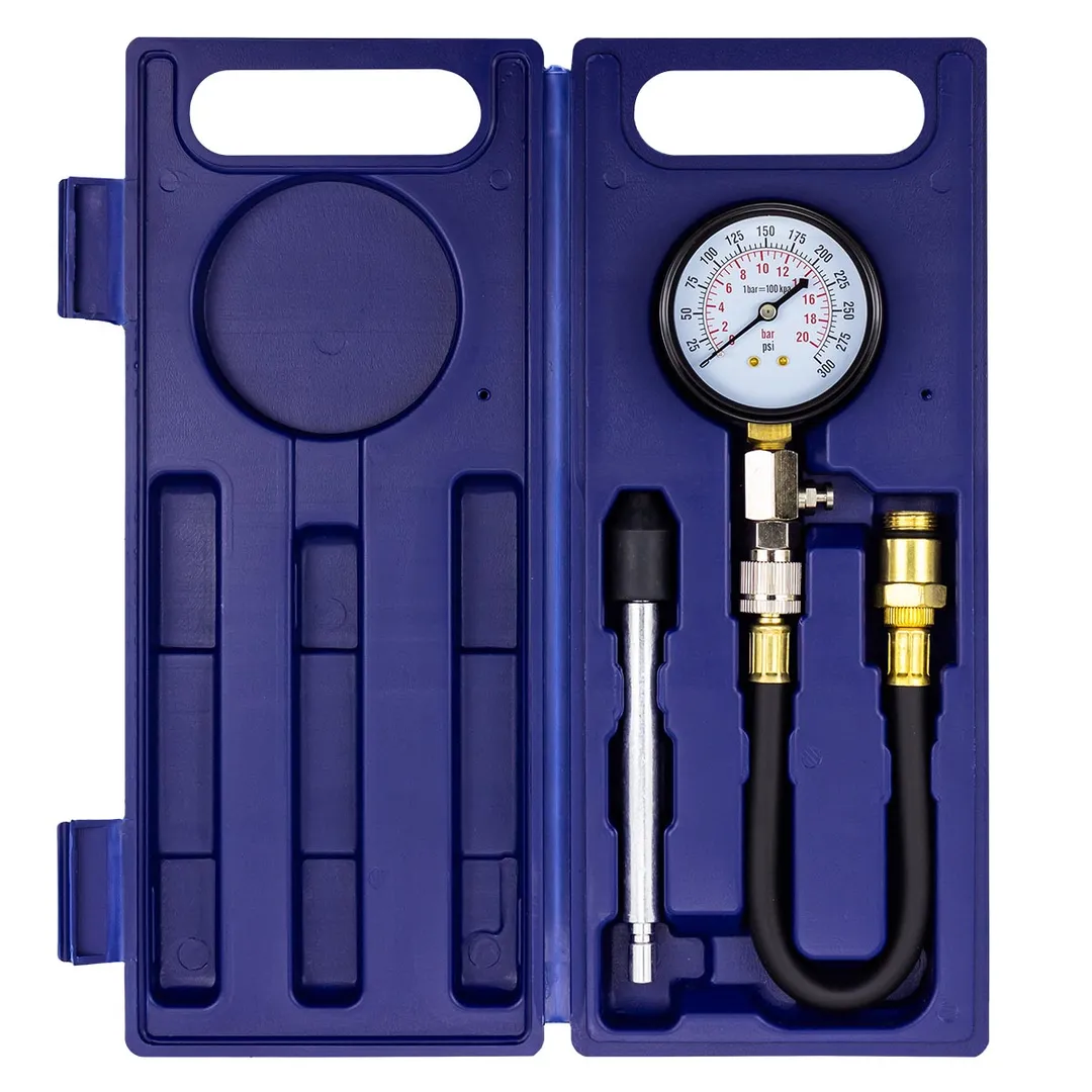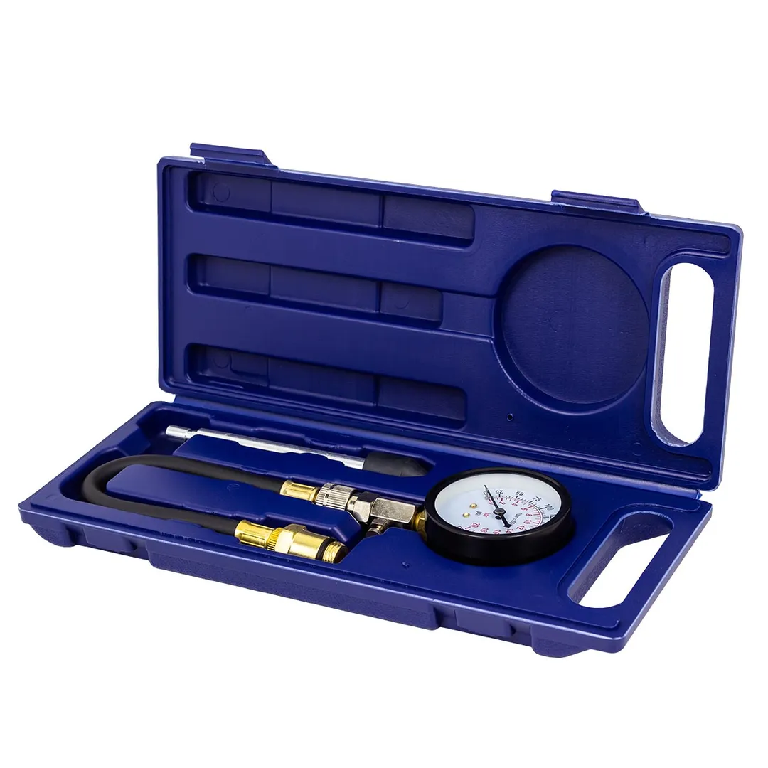 Набор с индикатором компрессии бензинового двигателя из 3 предметов, в кейсе - это прибор, который позволяет измерить давление в цилиндрах двигателя автомобиля. Он состоит из манометра, жесткого прижимного адаптера-переходника 150мм и набора адаптеров для различных типов двигателей. Манометр имеет диапазон измерений от 0 до 20 бар и точность измерения ±0,25 бар. Жесткий прижимной адаптер обеспечивает надежное крепление индикатора на двигателе и предотвращает его смещение во время измерения. Набор адаптеров позволяет использовать индикатор для различных типов бензиновых двигателей, включая двигатели с резьбой M14х1.25 и M18х1.5. Каждый адаптер имеет свою резьбу и подходит только для определенного типа двигателя. Компрессометр бензинового двигателя поставляется в кейсе для удобства хранения и транспортировки.Преимущества работы с нами