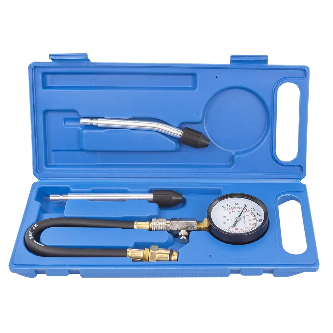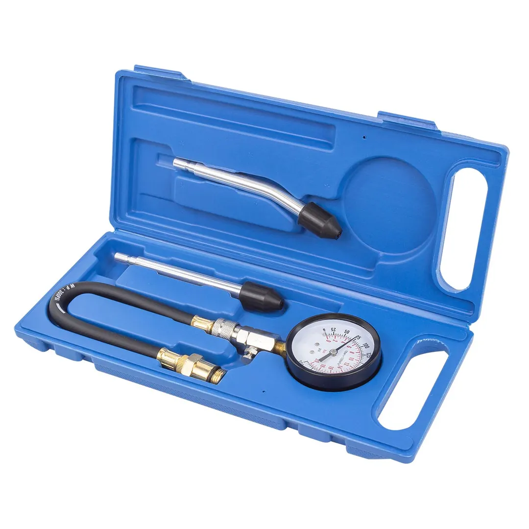 Набор с индикатором компрессии бензинового двигателя из 4 предметов, в кейсе - это прибор, который позволяет измерить давление в цилиндрах двигателя автомобиля. Он состоит из манометра, жестких прижимных адаптеров-переходников 150мм (прямой и изогнутый 15°) и набора адаптеров для различных типов двигателей. Манометр имеет диапазон измерений от 0 до 20 бар и точность измерения ±0,25 бар. Жесткие прижимные адаптеры обеспечивает надежное крепление индикатора на двигателе и предотвращает его смещение во время измерения. Набор адаптеров позволяет использовать индикатор для различных типов бензиновых двигателей, включая двигатели с резьбой M14х1.25 и M18х1.5. Каждый адаптер имеет свою резьбу и подходит только для определенного типа двигателя. Компрессометр бензинового двигателя поставляется в кейсе для удобства хранения и транспортировки.Преимущества работы с нами