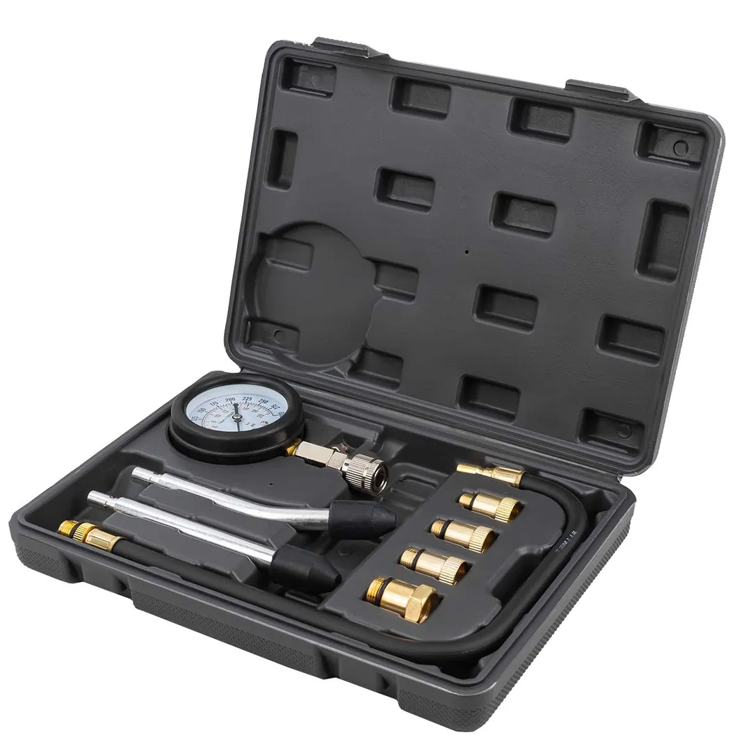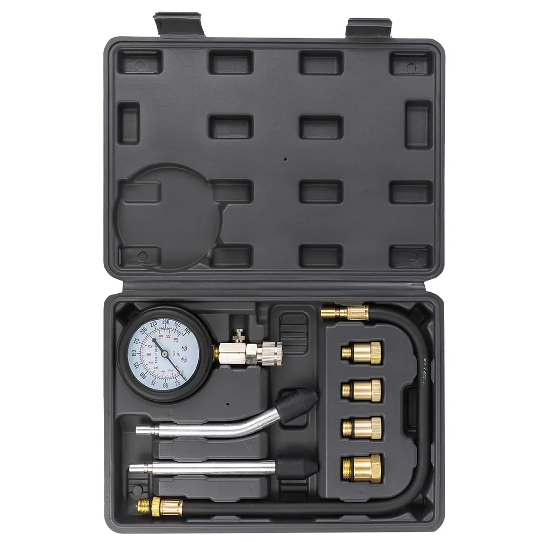 Набор с индикатором компрессии бензинового двигателя из 8 предметов в кейсе. Является профессиональным инструментом для определения давления в цилиндрах бензинового двигателя. Он состоит из манометров с диапазоном измерения 0-21 bar и точностью ±0.25 bar, жёстких прижимных адаптеров и адаптеров с различными резьбовыми соединениями (М10, М12, М14, М18). Благодаря такому набору, можно быстро и удобно измерить давление в любом бензиновом двигателе. Все инструменты находятся в прочном кейсе, что обеспечивает удобство хранения и транспортировки набора.Преимущества работы с нами