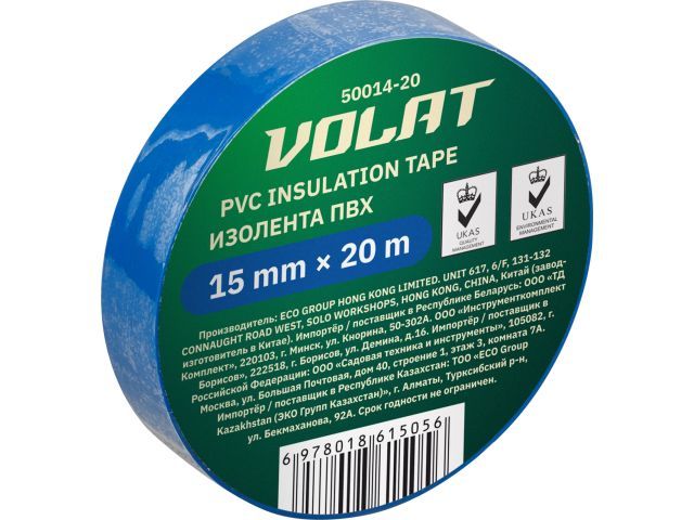 Изолента ПВХ 15ммх20м синяя, 130 мкм ВОЛАТ 50014-20