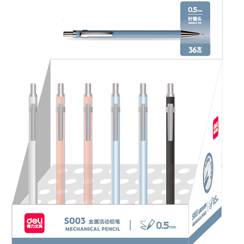 Карандаш автоматический "Deli S003", 0.5 мм, с ластиком, ассорти