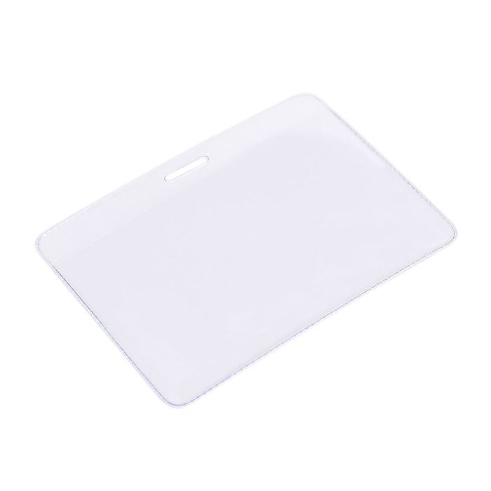 Карман для бейджа из эластичной прозрачной пленки с открытым верхом, для использования с текстильной тесьмой или клипсами для бейджей.