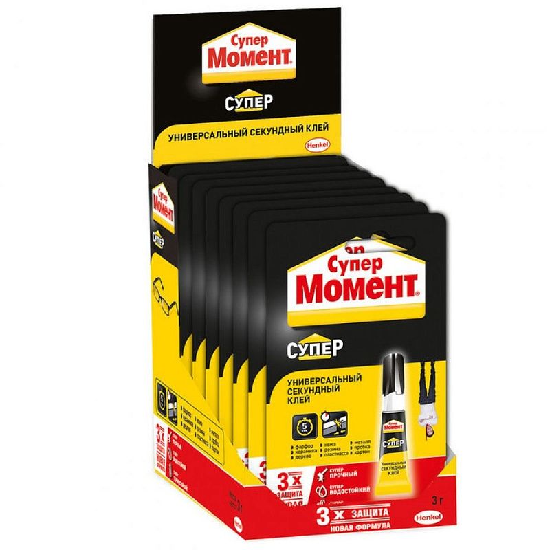 Клей универсальный секундный "Супер Момент" 3 гр., блистер-карта, шоу-бокс