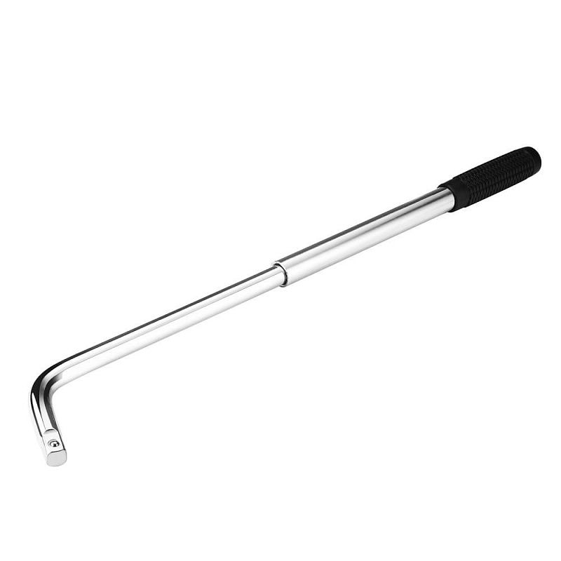 - Инструмент имеет телескопическую рукоятку, позволяющую увеличивать рабочую длину ключа, что повышает момент усилия и облегчает работу с крепежом в труднодоступных местах.