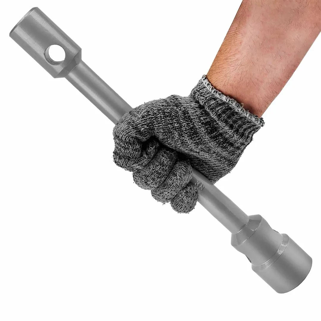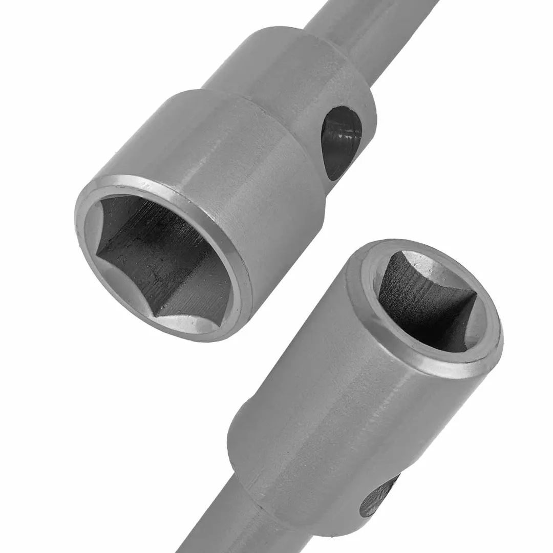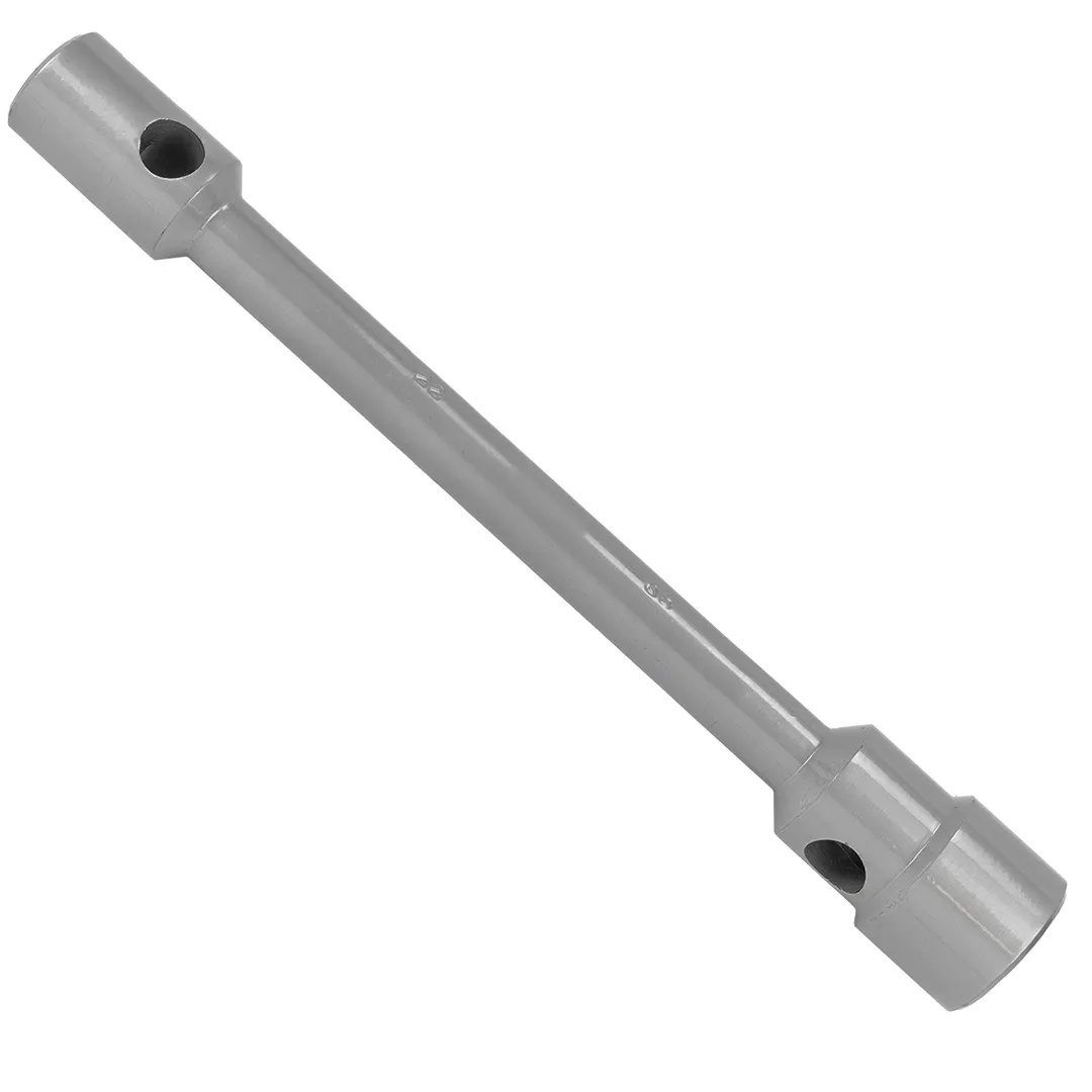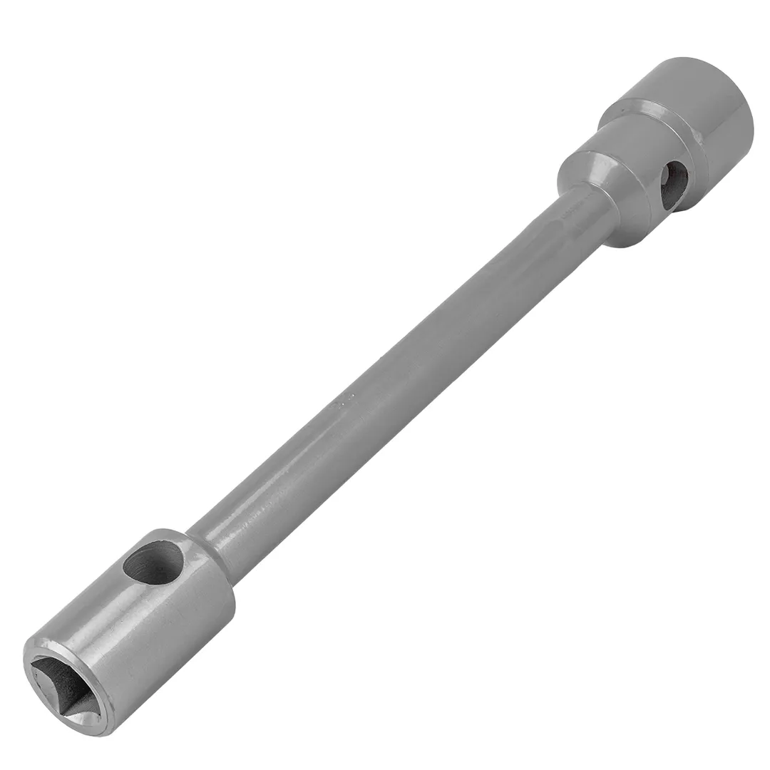 Ключ баллонный двусторонний усиленный 22/4гр. под футорку x38 (Общая длина -400 мм) используется для шиномонтажных работ на грузовом транспорте, в том числе на КАМАЗах, и автобусах. Две несъемные торцевые головки подходят под крепежи 22мм под футорку и шестигранник 38 мм. Инструмент применяется на станциях техобслуживания. Ключ может эксплуатироваться в любых условиях - цинковое покрытие защищает его от коррозии. Предназначен для грузового автотранспорта. Находит свое применение в автомастерских и станциях технического обслуживания автомобилей (СТО), в ремонтных и монтажных работах, строительной и сельскохозяйственной техники. Инструмент имеет высокую прочность, что упрощает работу с максимальной силой на различных автомобилях. Материал - хромованадиевая сталь.Преимущества работы с нами