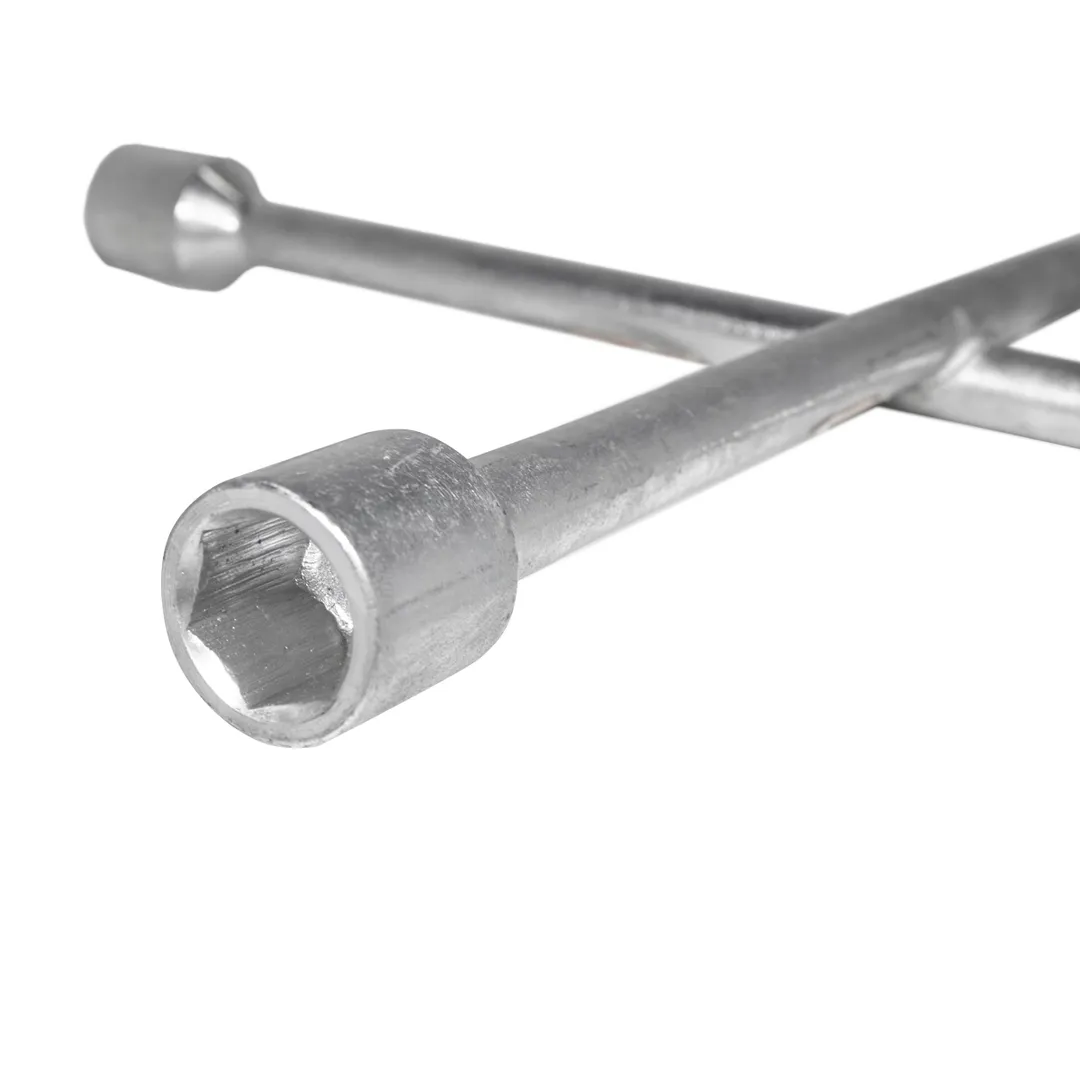 Ключ баллонный крестовой – это один из типов гаечных ключей с торцевым рабочим профилем, которым можно ослабить или затянуть зажимные гайки, фиксирующие автомобильные колеса. Инструмент надёжный и простой в использовании. Ключ баллонный используется при установке и демонтаже колес автомобилей. Состоит из двух прутьев сваренных в форме креста. На четырех концах ключа размещены торцевые головки размером 17, 19, 21 и 22 мм, а также переходник на 1/2", для возможности применения любого другого размера вашей колёсной гайки.Преимущества работы с нами