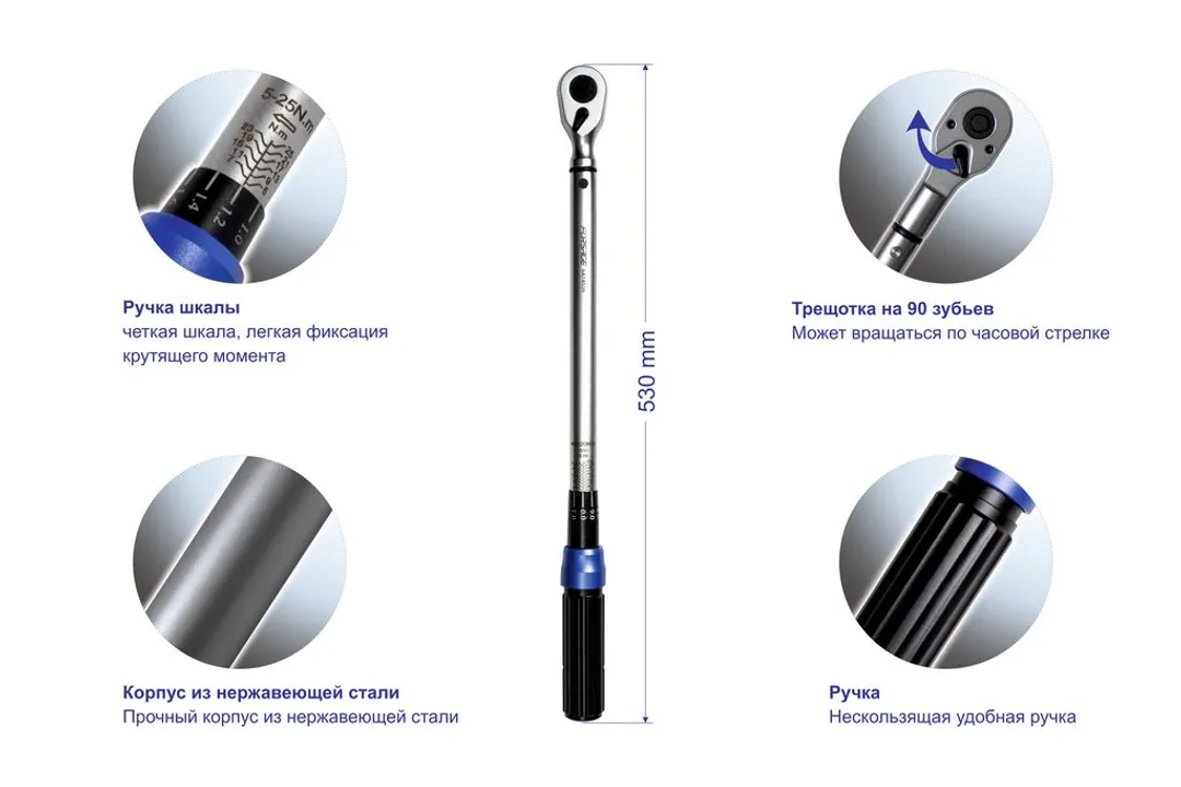 Ключ моментный, 1/2", 40-220Нм применяется в сфере ремонта автомобилей, а также различных узлов, механизмов и деталей, в промышленности, строительной сфере и др. Трещоточный механизм имеет 72 зубца. Позволяет установить нужное усилие в правую и левую сторону. Применяется при затягивании крепежа с регулируемым значением крутящего момента. Износостойкая нескользящая удобная ручка. Присоединительный квадрат: 1/2"; Крутящий момент : 40-220 Нм; Правосторонний / Левосторонний; Изготовлен из хром-ванадиевой стали (CR-V); Для удобства хранения и транспортировки поставляется в крепком ударопрочном футляре.Преимущества работы с нами