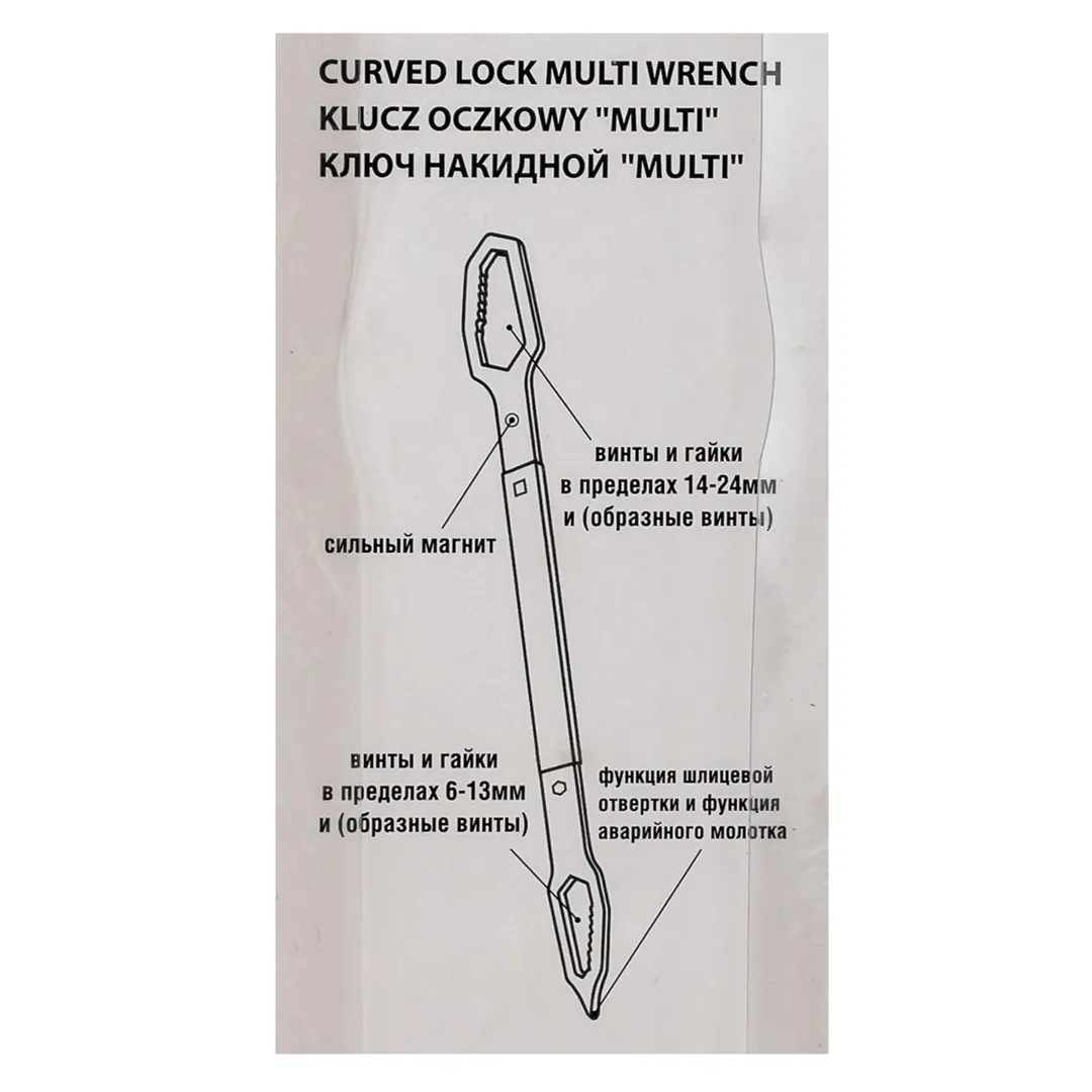 Универсальный гаечный ключ сделан из стали высокой прочности и способен заменить полноценный набор гаечных ключей. Благодаря оригинальной конструкции одним ключом можно открутить гайки 14-24 мм с одной стороны и 6-13 мм с другой. Ключ также оснащен шлицевой отверткой SL5.5, которая может использоваться и в качестве аварийного молотка, метчикодержателем М6-М8 (квадратное отверстие), битодержателем 1/4" (шестигранное отверстие) и магнитом. За счет саморегулирующейся технологии ключ автоматически адаптируется к размерам и форме болтов и гаек, независимо от того, являются ли они круглыми или шестигранными. Наш гаечный ключ станет незаменимым помощником как дома, так и при ремонте автомобиля, велосипеда, мототехники в гараже, а также на производстве.Преимущества работы с нами