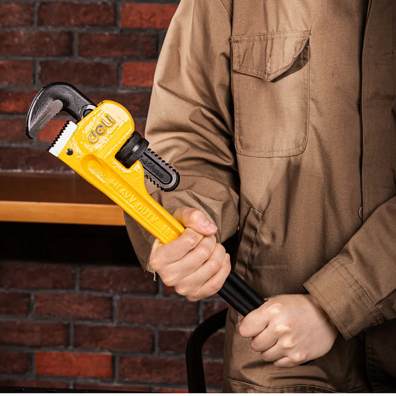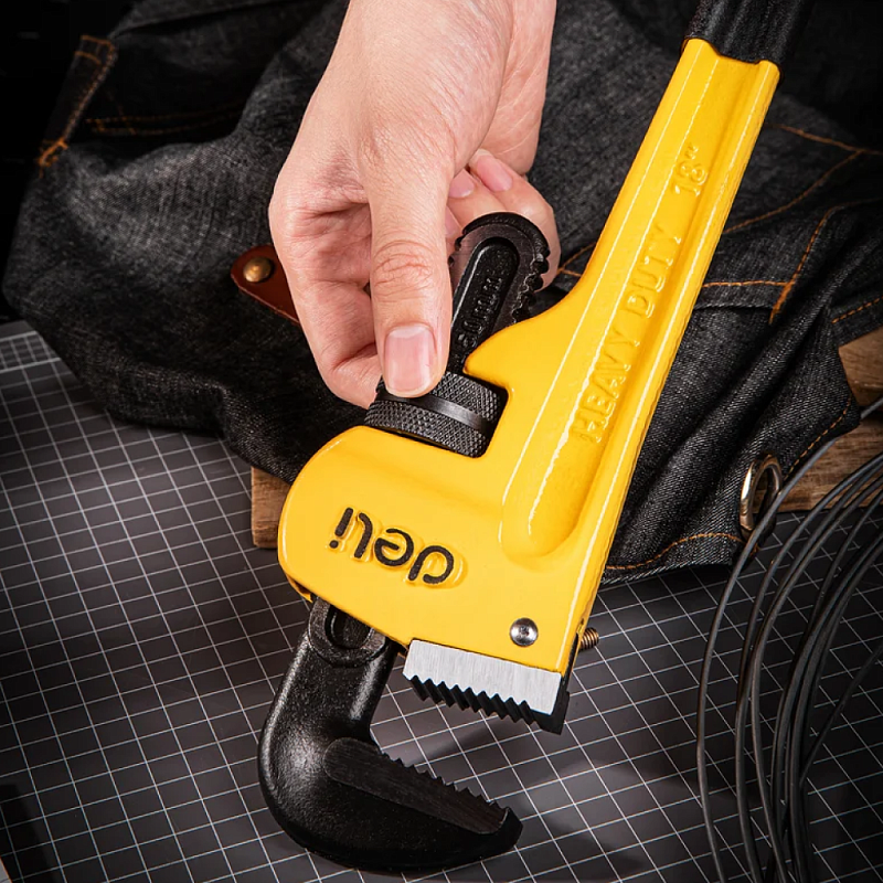 Ключ трубный Deli EDL2518, 410 мм, желтый, черный