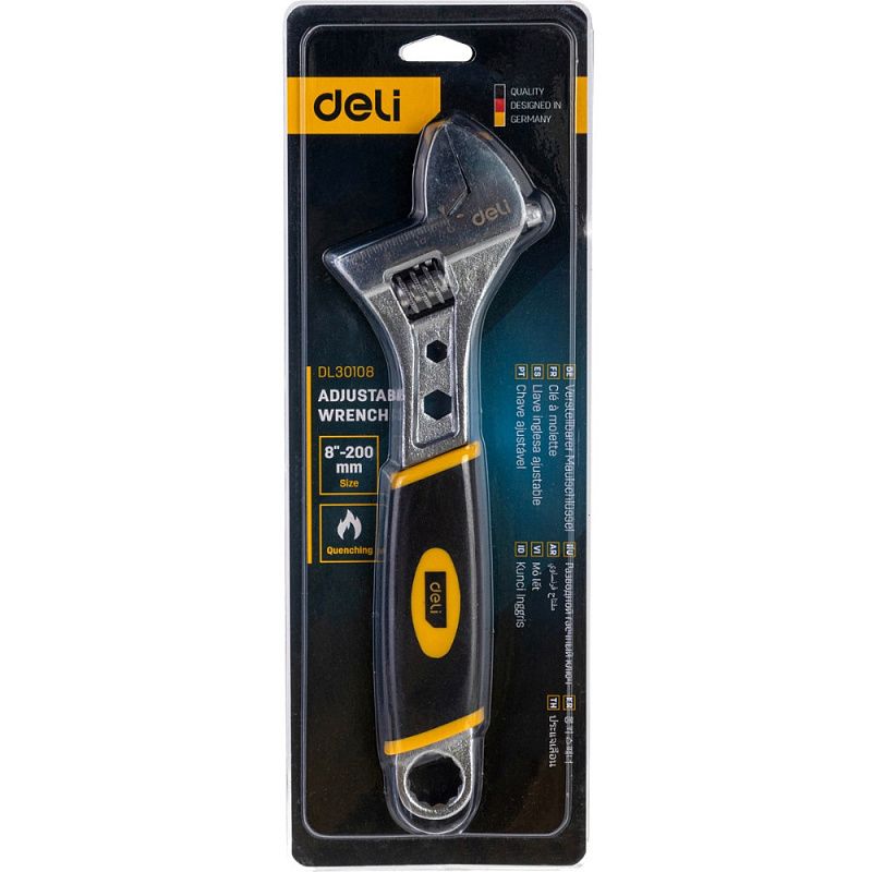 Ключ разводной Deli EDL30108, 200 мм, черный, желтый