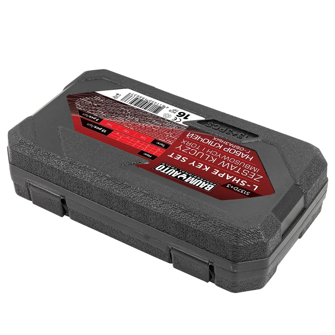 Набор Г-образных ключей HEX (6-гр) 2-19 мм, TORX T25, T30, T40 13+3 пр BaumAuto BM-5137D+3
