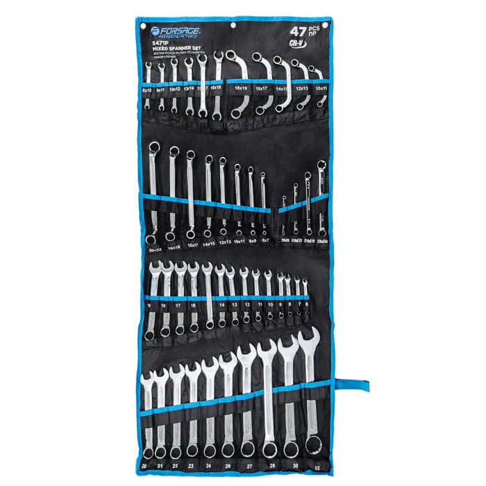 Набор комбинированных ключей 6-32 мм, накидных 6×7-20×22 мм, разрезных 8×10-16×18 мм 47 пр Forsage F-5471P