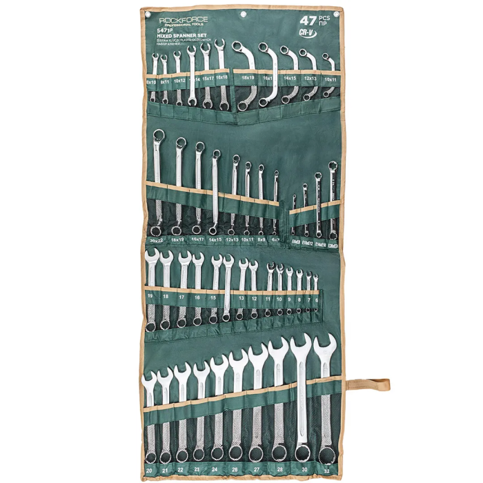 Набор комбинированных ключей 6-32 мм, накидных 6×7-20×22 мм, разрезных 8×10-16×18 мм 47 пр RockForce RF-5471P