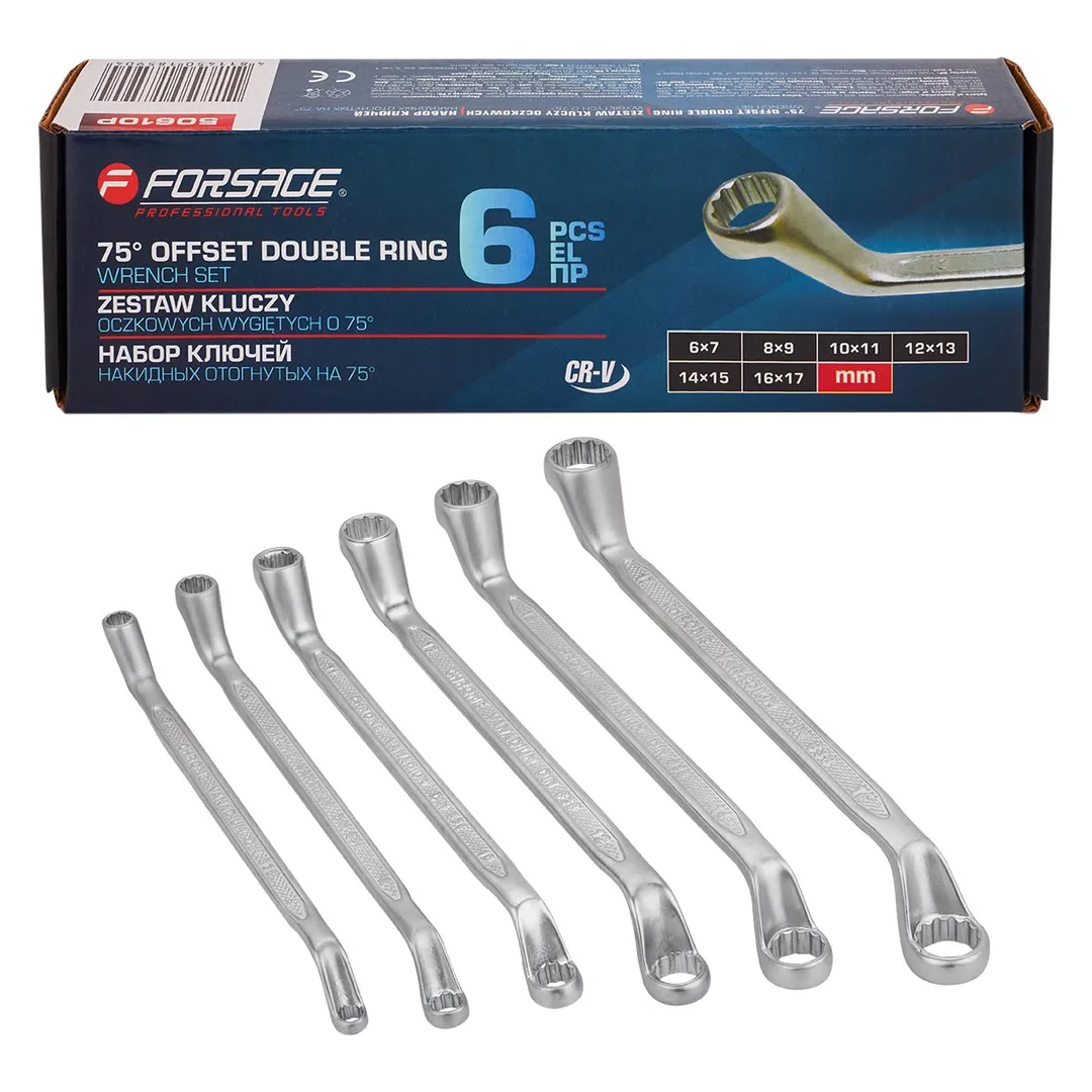 Набор накидных ключей отогнутых на 75град. 6х7-16х17 мм 6 пр Forsage F-50610P