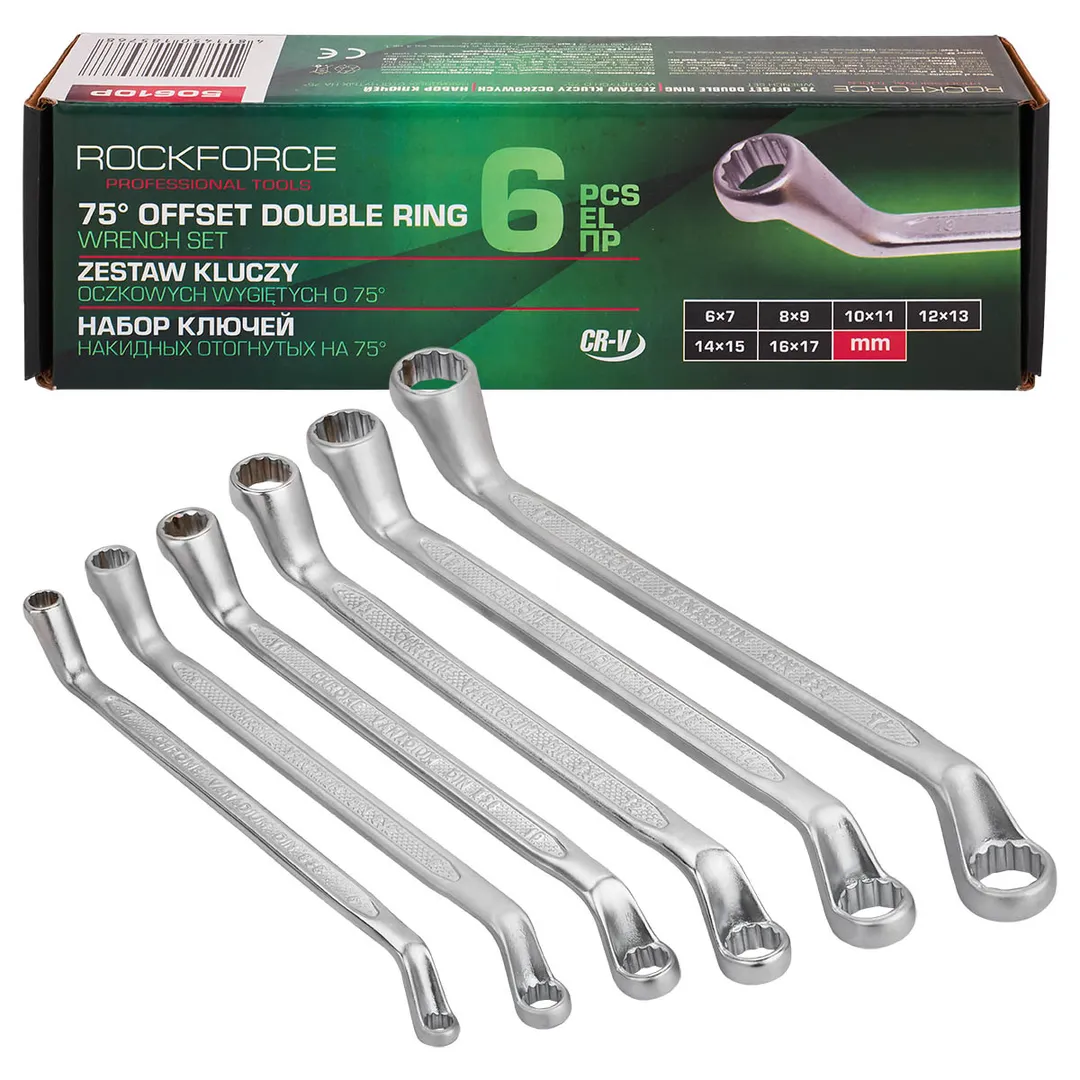 Набор накидных ключей отогнутые на 75 град 6х7-16х17 мм 6 пр RockForce RF-50610P