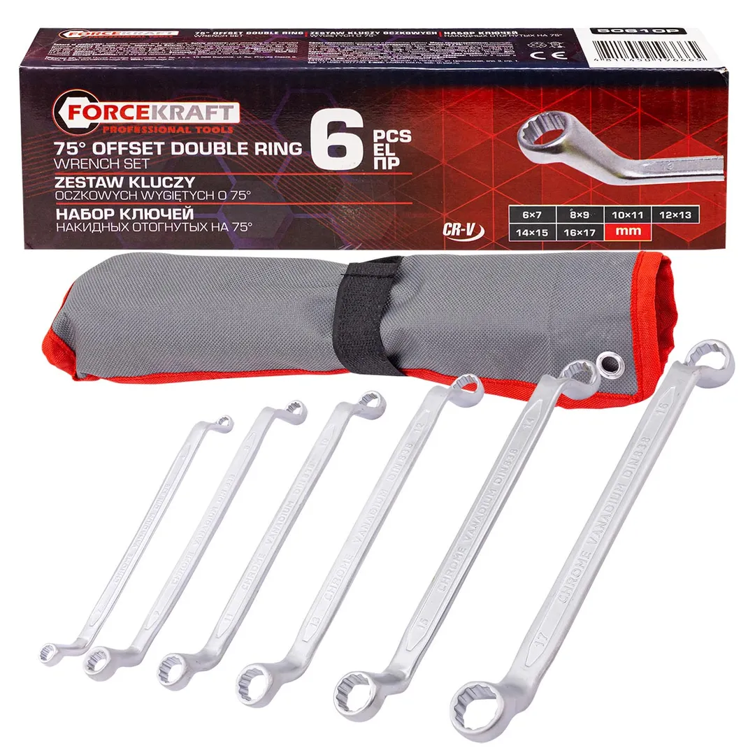 Набор накидных ключей, отогнутых на 75° 6х7-16х17 мм 6 пр ForceKraft FK-50610P