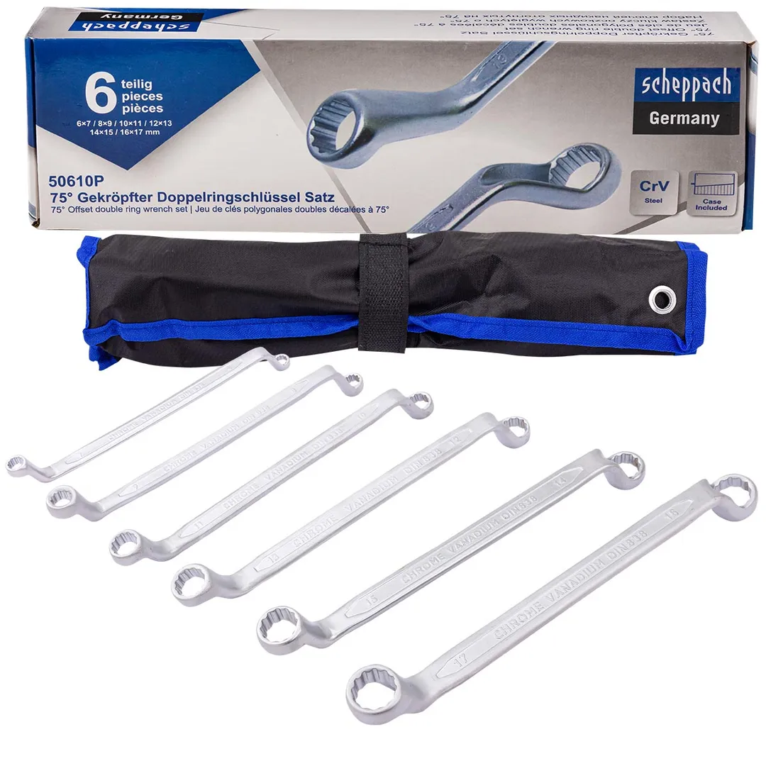 Набор накидных ключей, отогнутых на 75° 6х7-16х17 мм 6 пр Scheppach Sch-50610P