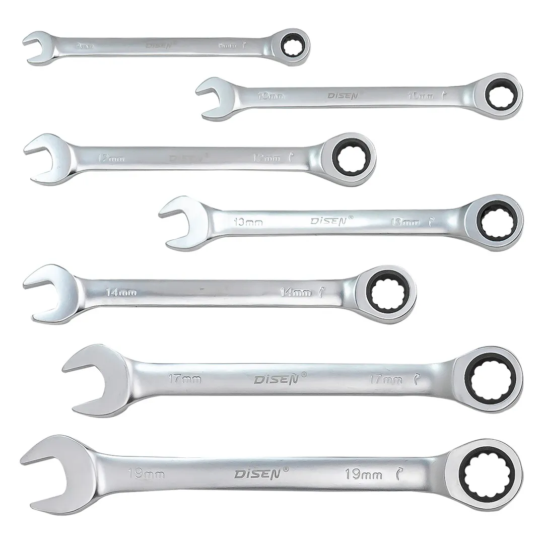 Набор ключей трещоточных 8-19 мм, 7 пр. DISEN DSD1509
