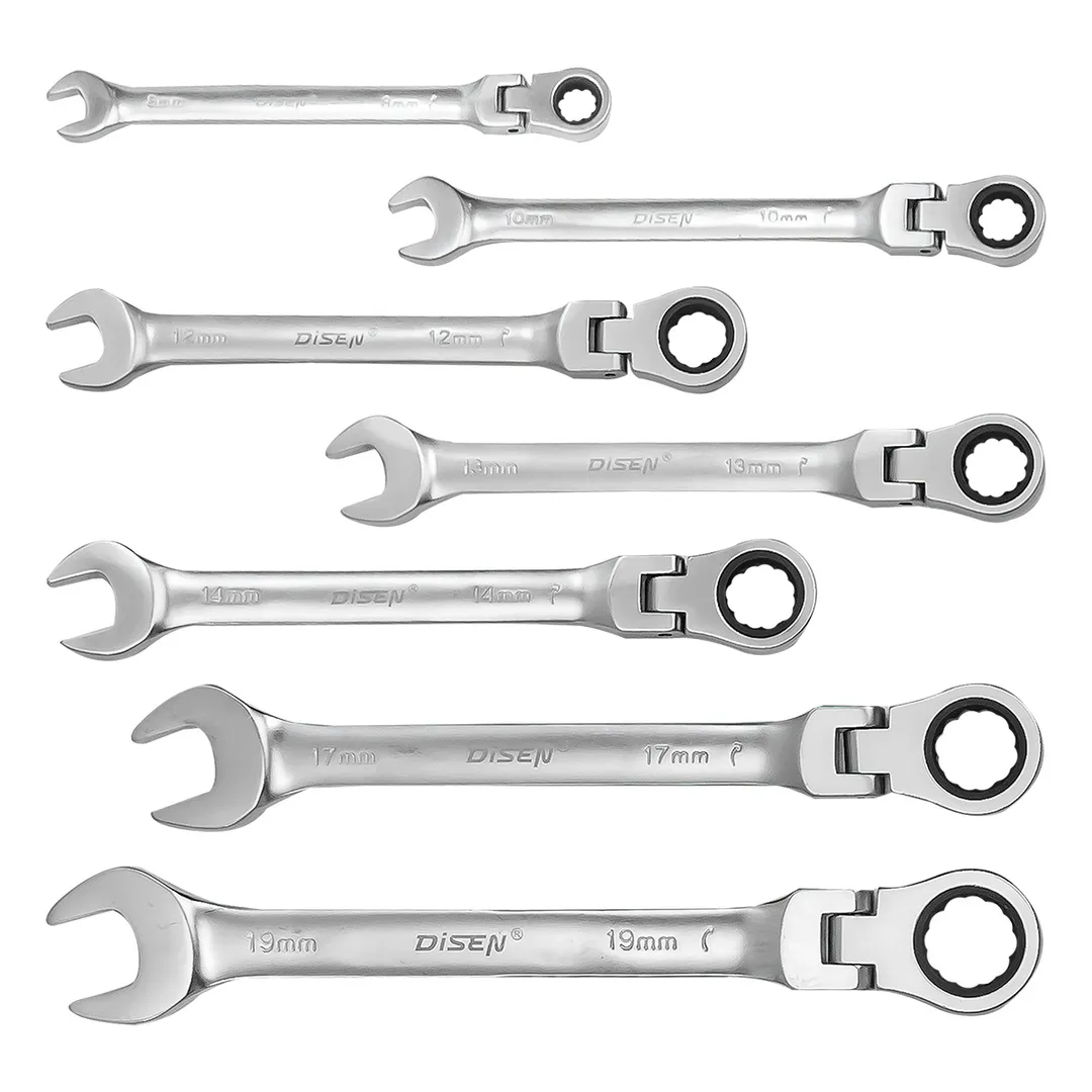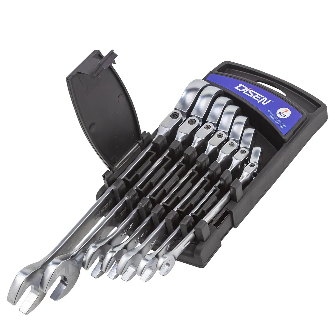 Набор ключей трещоточных с шарниром 8-19 мм, 7 пр. DISEN DSD1509F