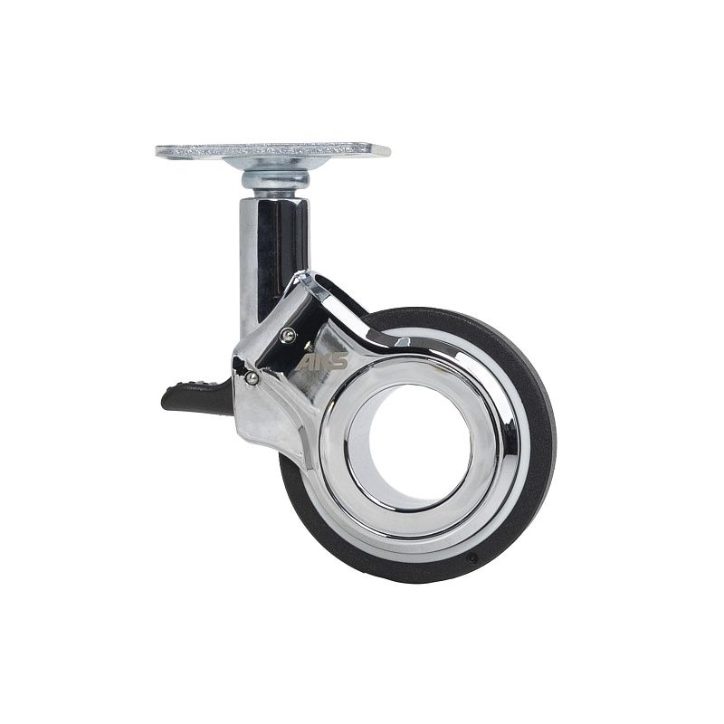 Колесо меб. GALAXY d60 h94 с площадкой с торм., хром/черный AKS 122702
