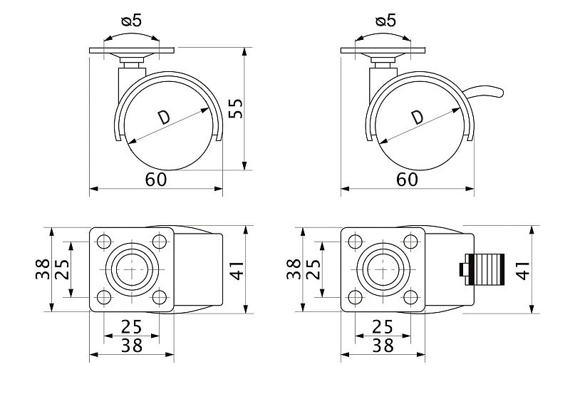 Серия бюджетных пластиковых колес для мебели. Рекомендованная статическая/динамическая нагрузка на 1 колесо: 15/12кг.Технические характеристики: