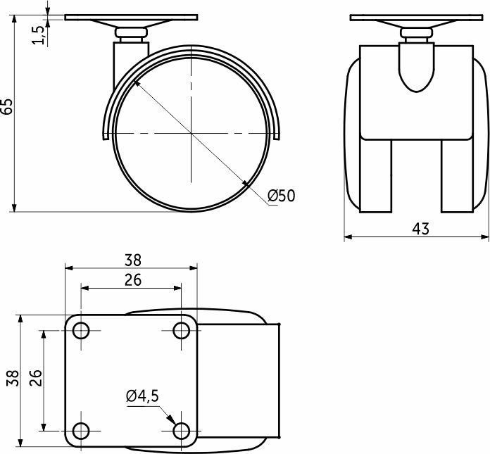 Колесо меб. пласт. d50 с площадкой, черный RU 86049, описание:
