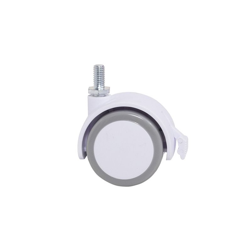 Колесо меб. пласт. FURNI d50 с винтом M8 с торм., белый/серый AKS 122722, описание:
