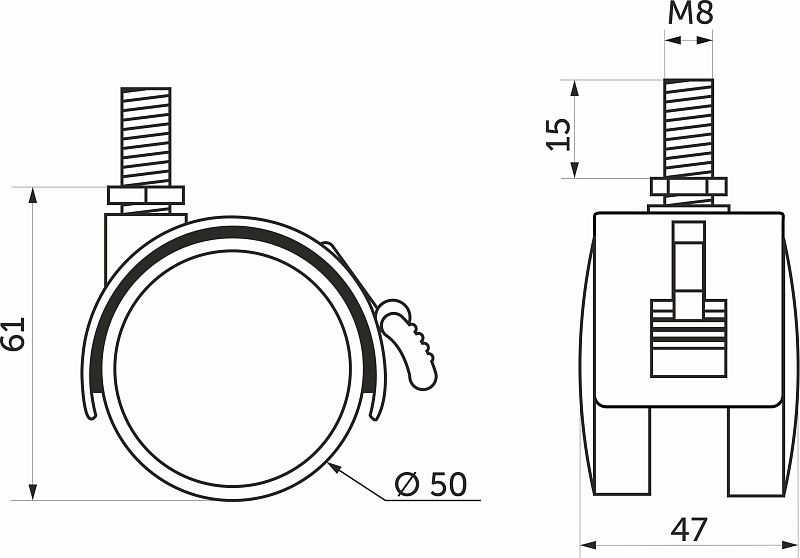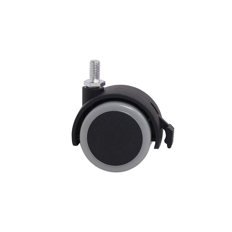 Колесо меб. пласт. FURNI d50 с винтом M8 с торм., черный/серый AKS 122721, описание: