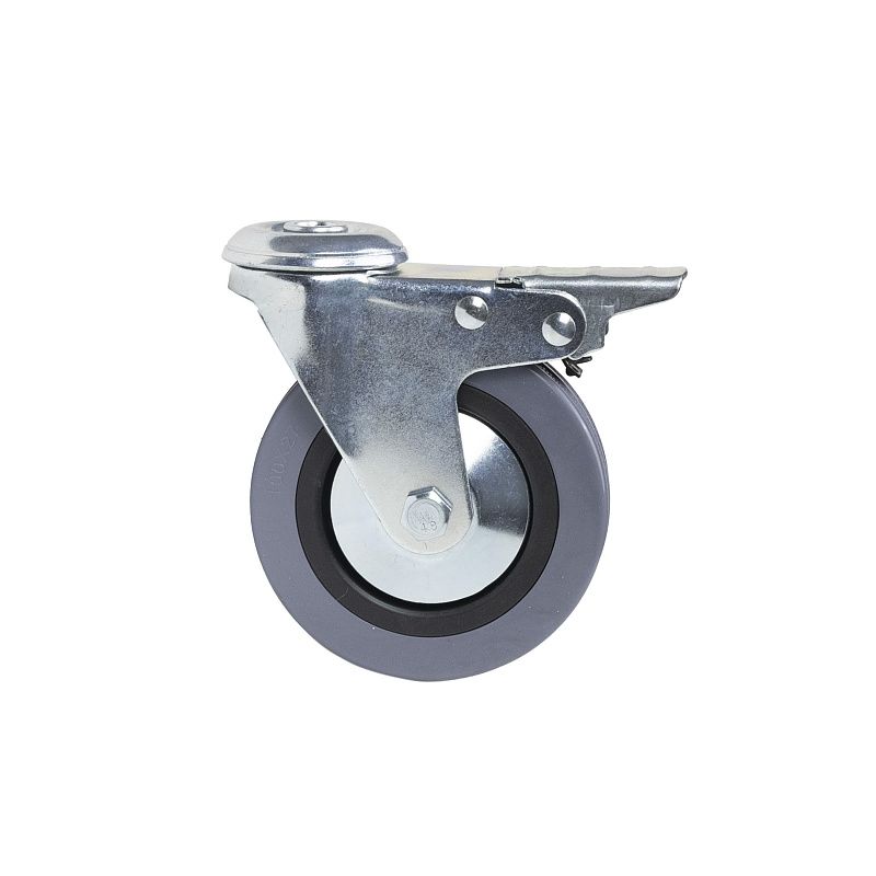 Колесо меб. TECH d100 h128 под винт М10 с торм., серый AKS 123100