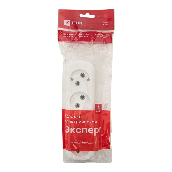 Колодка 4 гн, 10А 2,2кВт б/з Эксперт EKF PROxima AKB10-4