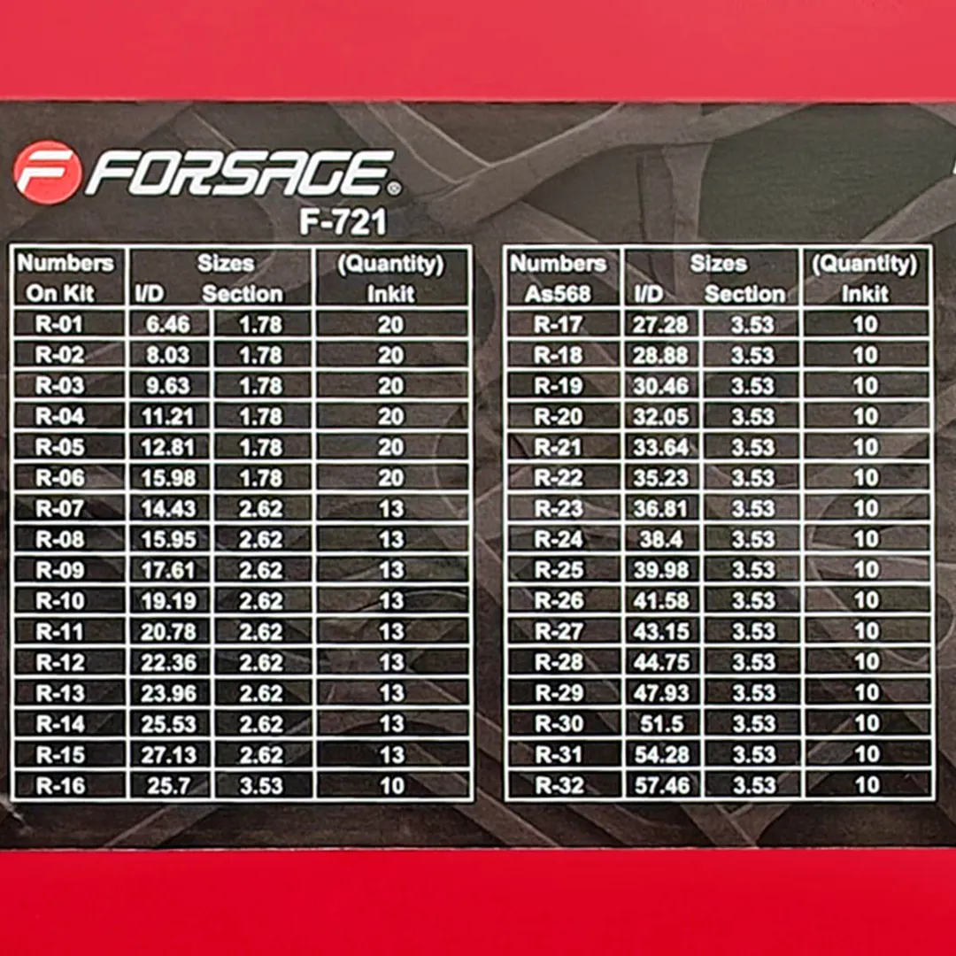 Набор уплотнительных колец, резиновые маслобензостойкие 407 пр, метрические Forsage F-721