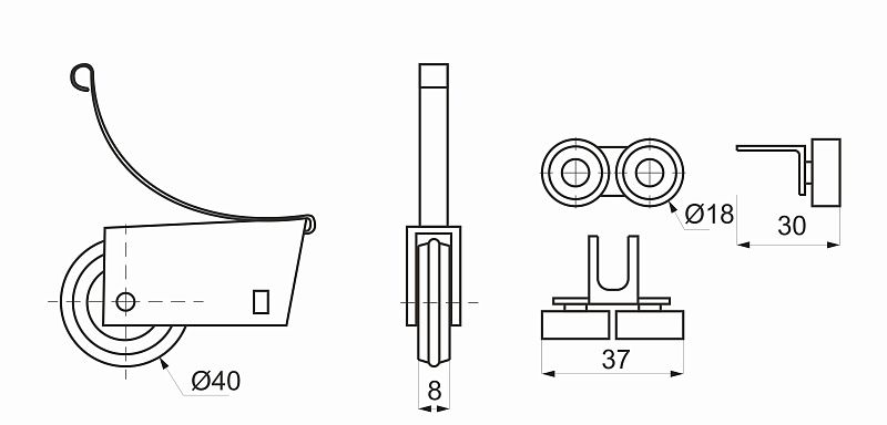 Комплект роликов SENATOR закрытый для 1 раздвижной двери 50 кг AKS LIGHT 24119, описание: