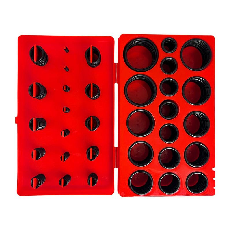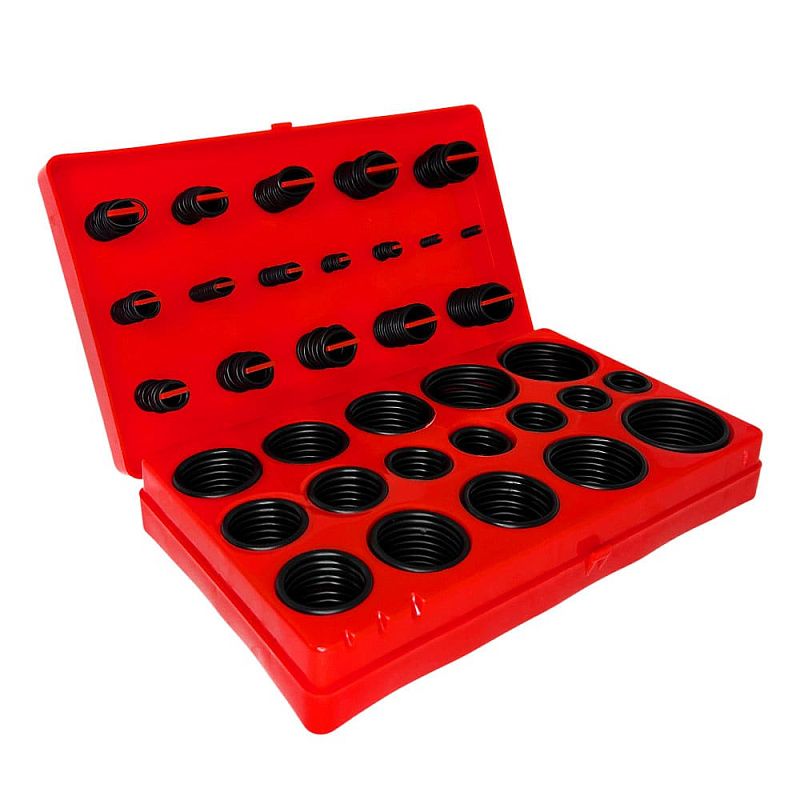 Множество полезных универсальных уплотнительных колец в пластиковом органайзере Кольца устойчивы к воздействию кислот, топлива, масел, высоких температур и др.