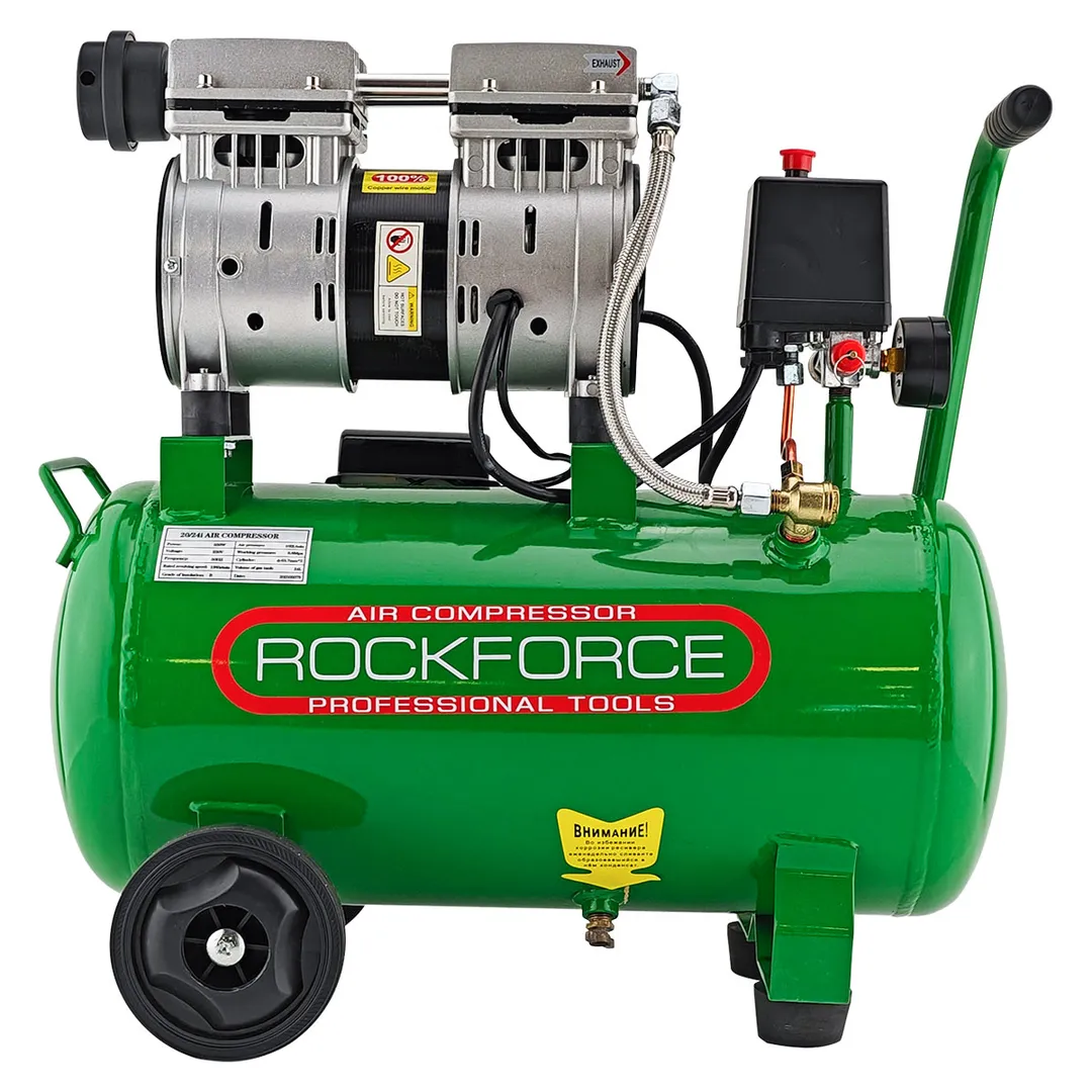 Компрессор поршневой безмасляный с прямым приводом, 0.75кВт, 8 бар,ресивер 24л, 105л/м, 1380 об/мин, 220В RockForce RF-20/24I