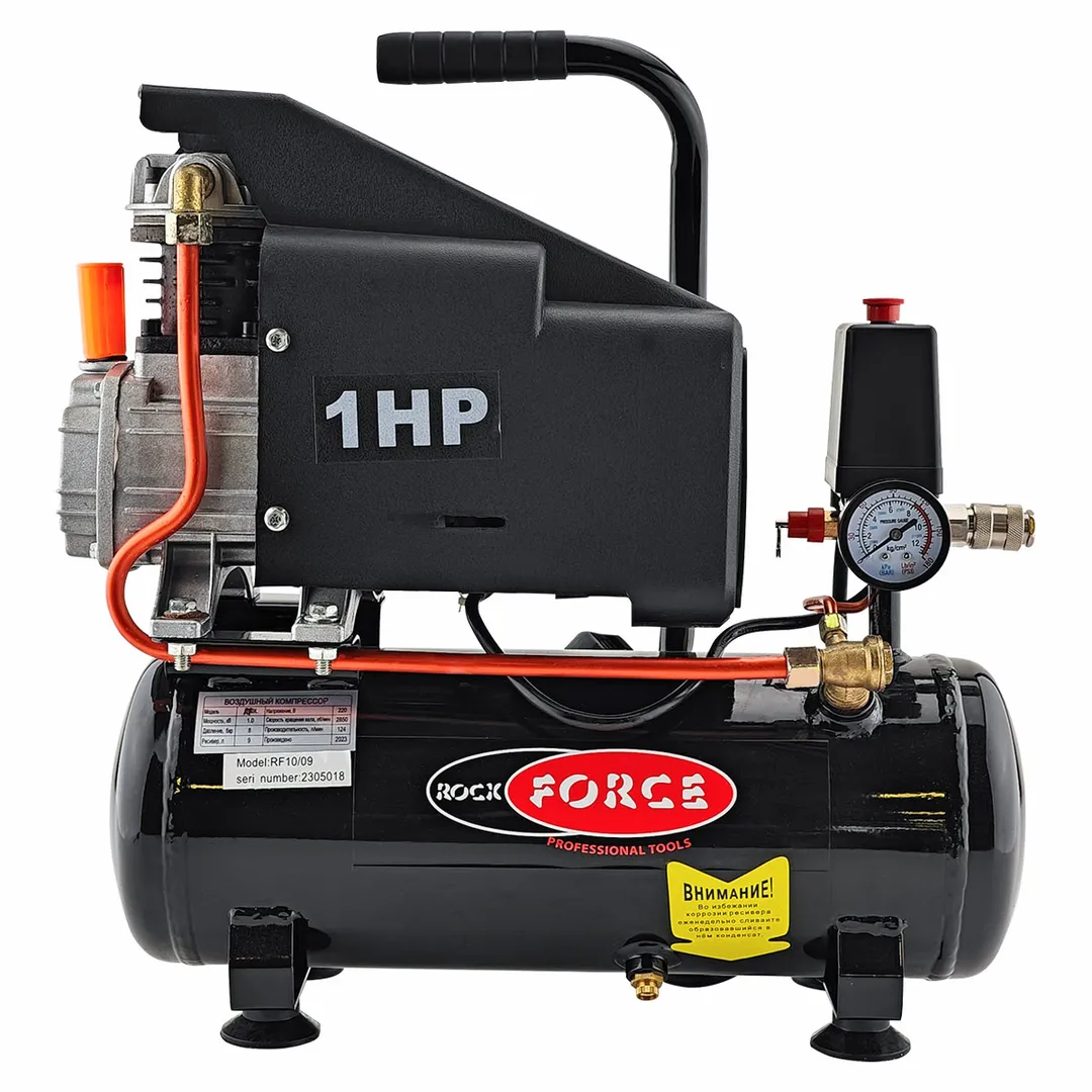 Компрессор поршневой масляный с прямым приводом, 220В, 1.1кВт, 2850 об/мин, ресивер 9 л,8бар, 155л/м, 93дБ RockForce RF-9L