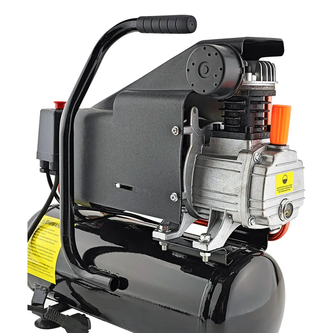 Компрессор поршневой масляный с прямым приводом. Надежную работу обеспечивают масляный тип смазки, прямой привод, механический предохранитель клапана высокого давления и выключатель давления. Домашний компрессор оснащен одноцилиндровым двигателем, а также манометром для регулировки давления. Качество работы с компрессором повышается за счет антивибрационной подушки, которая поглощает вибрацию при любой частоте работы двигателя. Модель оснащена индикатором уровня масла и защитой от перегрузок, что увеличивает срок службы компрессора. С помощью данного компрессора можно подкачать колесо, подкрасить элементы авто, зачистить бормашинкой ржавчину или обработать составами днище или помыть двигатель авто и многое другое. Благодаря наличию колес, передвижной компрессор легко использовать на даче для продувки труб водоснабжения перед зимой, или даже дома для продувки водопровода. Электропитание - 220 В. Потребляемая мощность - 0,75 кВт. Максимальное давление - 8 бар. Производительность - 124 л/мин. Объем ресивера - 9 литров.Преимущества работы с нами