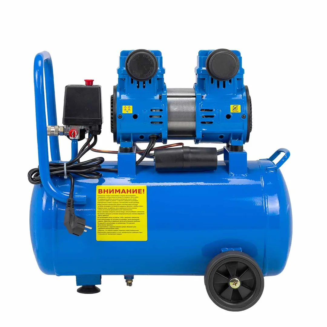 Компрессор поршневой безмасляный - электромеханический инструмент, предназначенный для получения сжатого воздуха. Надежную работу обеспечивают прямой привод, механический предохранитель клапана высокого давления и выключатель давления. Домашний компрессор оснащен двухцилиндровым двигателем, а также манометром для регулировки давления. Компрессор работает в безмасляном режиме, что позволяет применять аппарат без специального оборудования для очистки воздуха от масла. Модель оснащена защитой от перегрузок, что увеличивает срок службы компрессора. Благодаря наличию колес, передвижной компрессор легко использовать на даче для продувки труб водоснабжения перед зимой, или даже дома для продувки водопровода. Технические характеристики: Мощность двигателя 1100 Вт; Напряжение сети 230 В; Частота тока 50 Гц; Производительность 210 л / мин; Давление максимальное: 8 бар; Уровень шума 65дБ; Ресивер 24 литра.Преимущества работы с нами