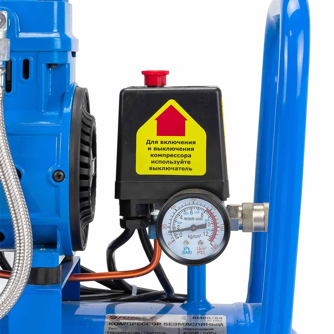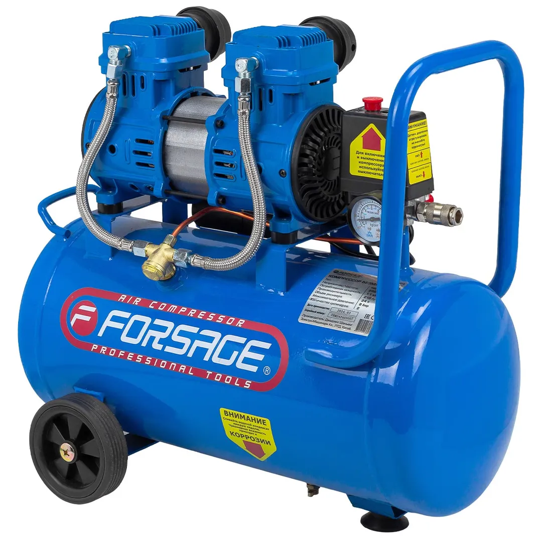 Компрессор поршневой с прямым приводом, 2 цилиндра, безмасляный, ресивер 24 л, 1.1 кВт, 8 бар, 210 л/м, 230В Forsage F-BM20/24 OIL FREE
