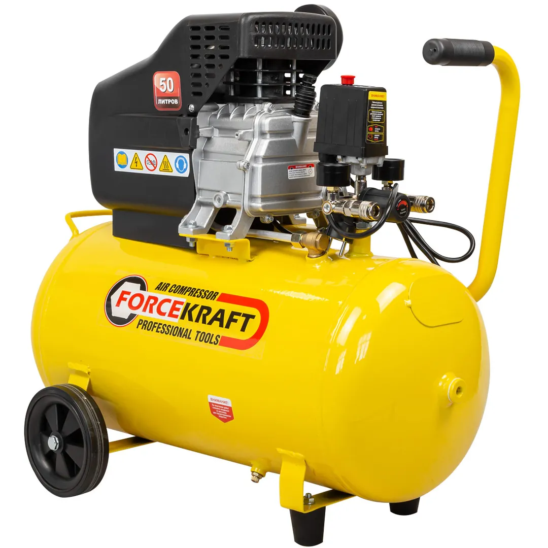 Компрессор поршневой с прямым приводом, ресивер 50 л, 8 бар, 180л/м, 1100W, 230V ForceKraft FK-BM25/50, описание и характеристики:
