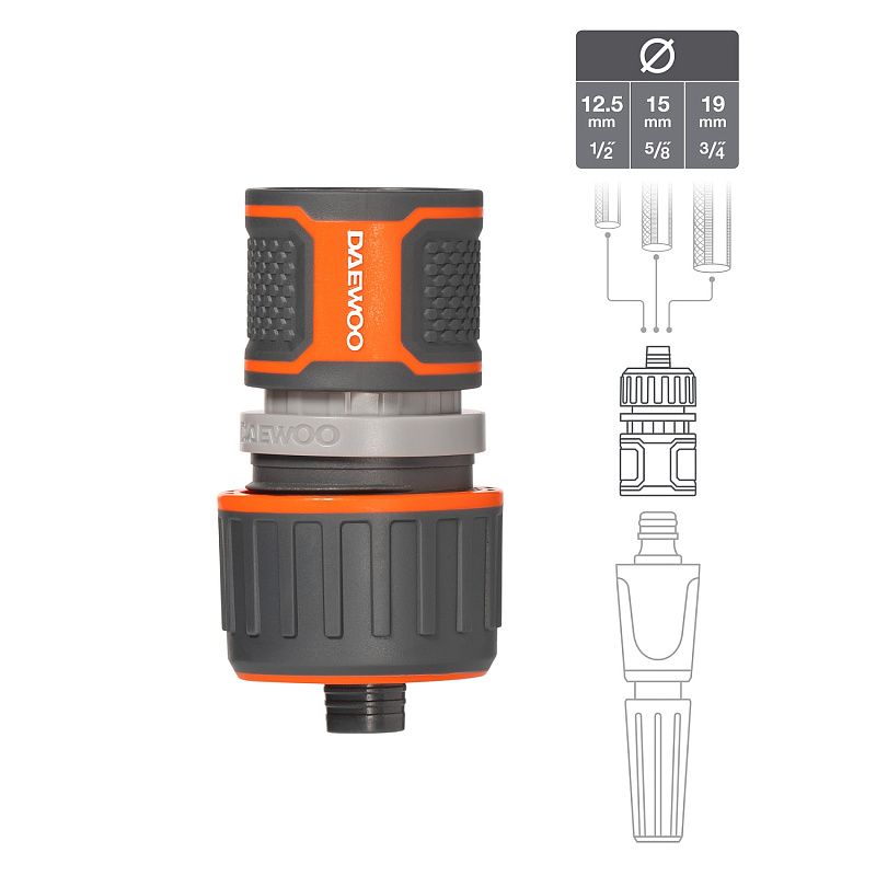 Коннектор универсальный для шланга 13-15-19 мм (1/2 " – 5/8" – 3/4 ") DWC 2000 000 Daewoo Power DWC 2000 000, описание: