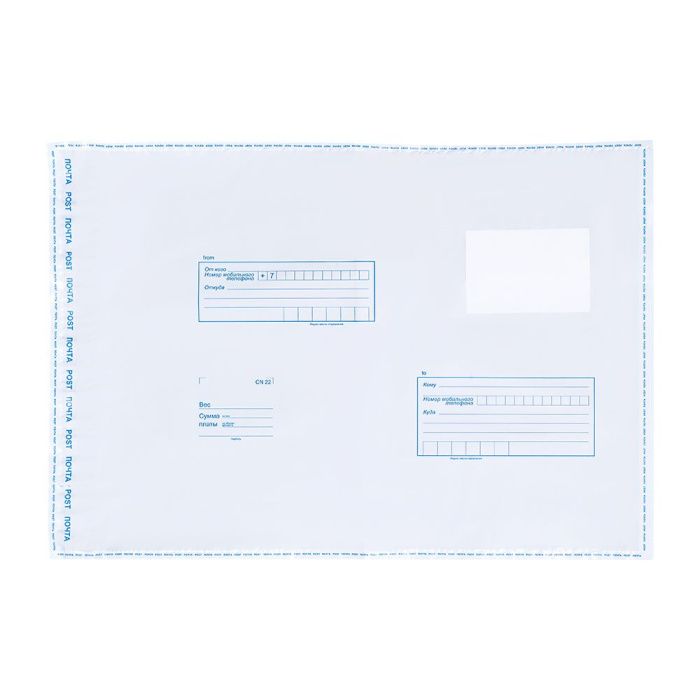 Почтовые пластиковые пакеты изготовлены из влагонепроницаемого трехслойного непрозрачного особо прочного полиэтилена высокого давления и предназначены для упаковки всех видов почтовых отправлений (писем, бандеролей, мелких посылок - простых, заказных, с объявленной ценностью). Благодаря специальному покрытию пакетов, на них можно вписывать информацию о получателе и отправителе обычной шариковой ручкой. Инструкция по заклеиванию клапана пакета приведена на оборотной стороне пакета.