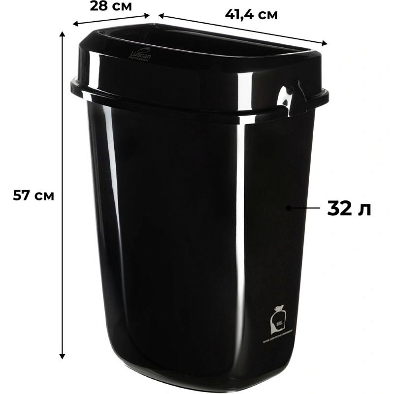 Контейнер для мусора подвесной Luscan Professional 32 л изготовлен из пластика черного глянцевого цвета.