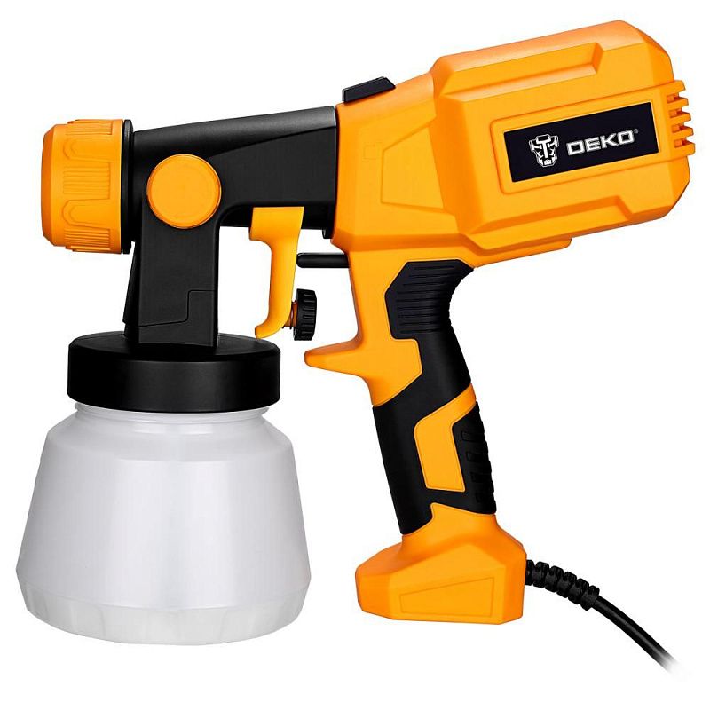 - Сетевой краскопульт DEKO SG500D предназначен для эффективного и равномерного нанесения лакокрасочных материалов в условиях бытового использования. Благодаря мощности 500 Вт он обеспечивает стабильную работу, позволяя наносить до 700 мл краски в минуту, что делает его удобным решением для окраски стен, мебели, заборов и других поверхностей без необходимости прибегать к профессиональным услугам.