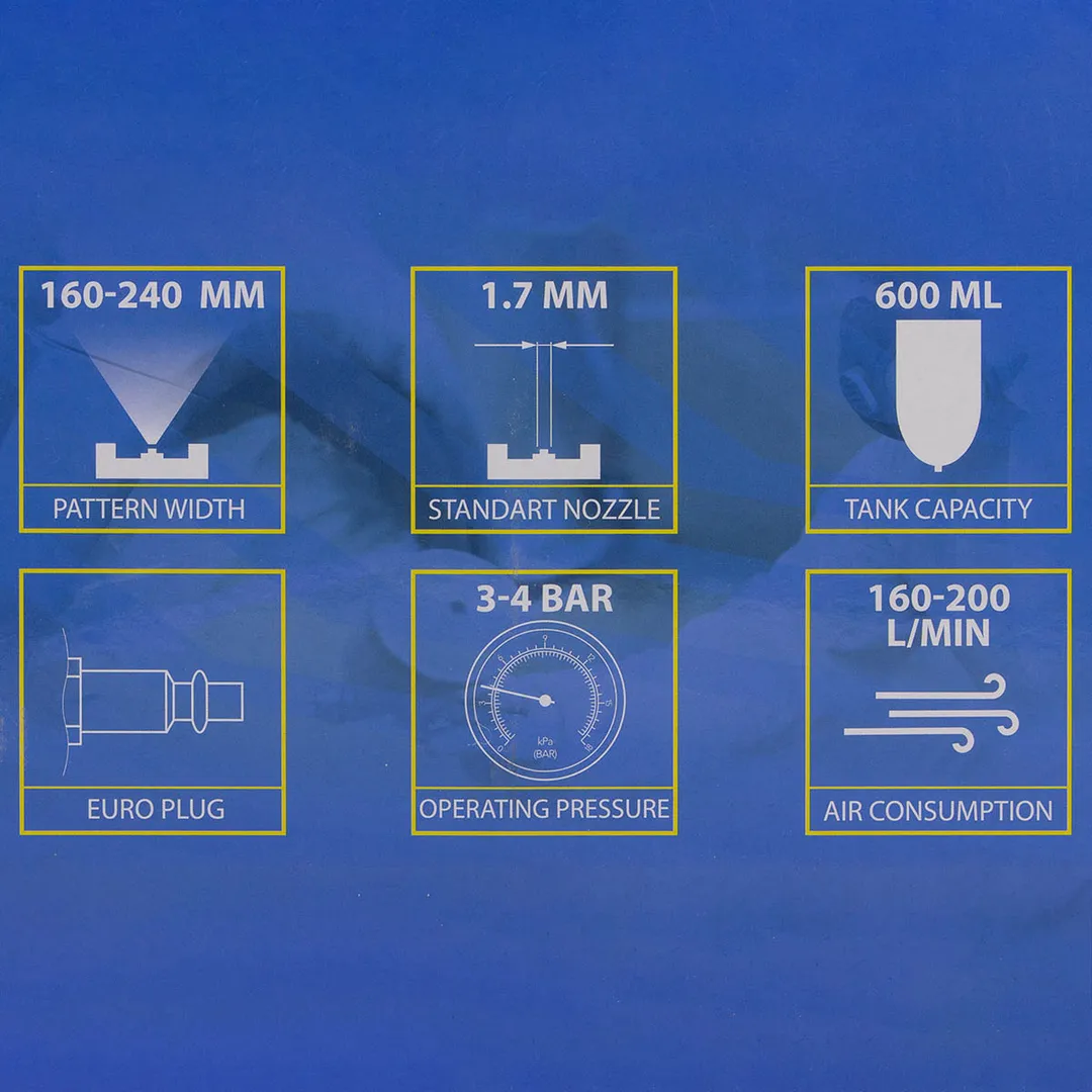 Краскораспылитель с верхним пластиковым бачком бачок 600 мл, сопло 1.7 мм Partner PA-H-827-3V