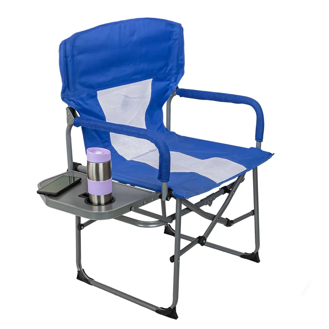Складное туристическое кресло с удобным столиком и подстаканником - отличный атрибут любого отдыха на природе, даче, рыбалке или пикнике. Компактное и легкое складывание позволит взять стул кемпинговый с собой в поход или туристическую поездку. Материал кресла для рыбалки из долговечной и износостойкой ткани с влагоотталкивающим покрытием, а также со вставками из дышащей сетки. Прочный и надежный каркас из стальных трубок, две параллельные составляющие каркаса служат надежными опорами для использования на любой поверхности. Кресло в поход с широким сиденьем с закрытой спинкой из прочного материала, который не впитывает влагу и очень быстро высыхает на солнце. Большим преимуществом является встроенный столик с утопленным держателем для напитков. Кресло рыболовное не проваливается в землю и песок, так как имеет специальные наконечники на ножках. Удобная спинка стула позволяет расслабиться и не дает спине затекать. Размеры сиденья 50х50см, высота сидения 46см, полная высота кресла 93см; Размер кресла в сложенном виде 53х48х16см; Размер бокового столика 38х24см; Максимальная нагрузка 150кг.Преимущества работы с нами