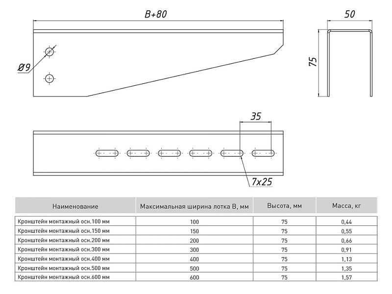 Кронштейн монтажный 100 мм (1,5 мм) HDZ EKF km100-HDZ, технические характеристики: