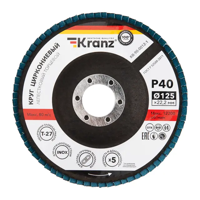 Круг лепестковый 125х22,2 мм P40 циркониевый плоск. INOX KRANZ KR-90-0012-1