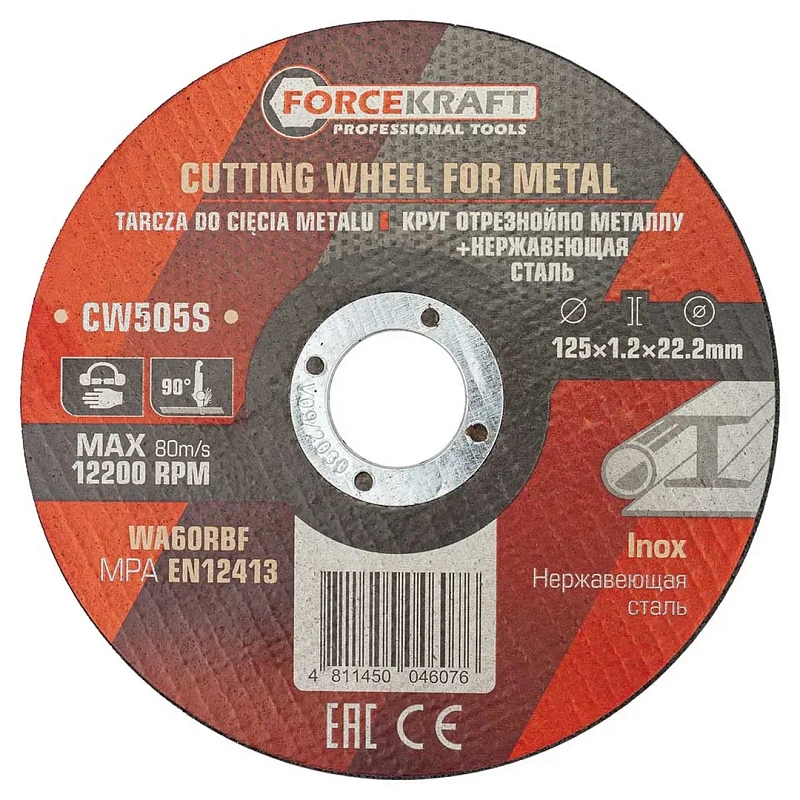 Круг отрезной по металлу и нержавеющей стали 125x1.2x22.2 мм, 20 шт ForceKraft FK-CW505S[к-т 20 шт.]
