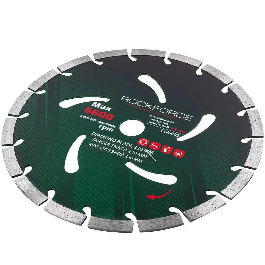 Круг отрезной сегментный алмазный 230 мм, посадка 22 мм, 6600 об/мин RockForce RF-CW6005